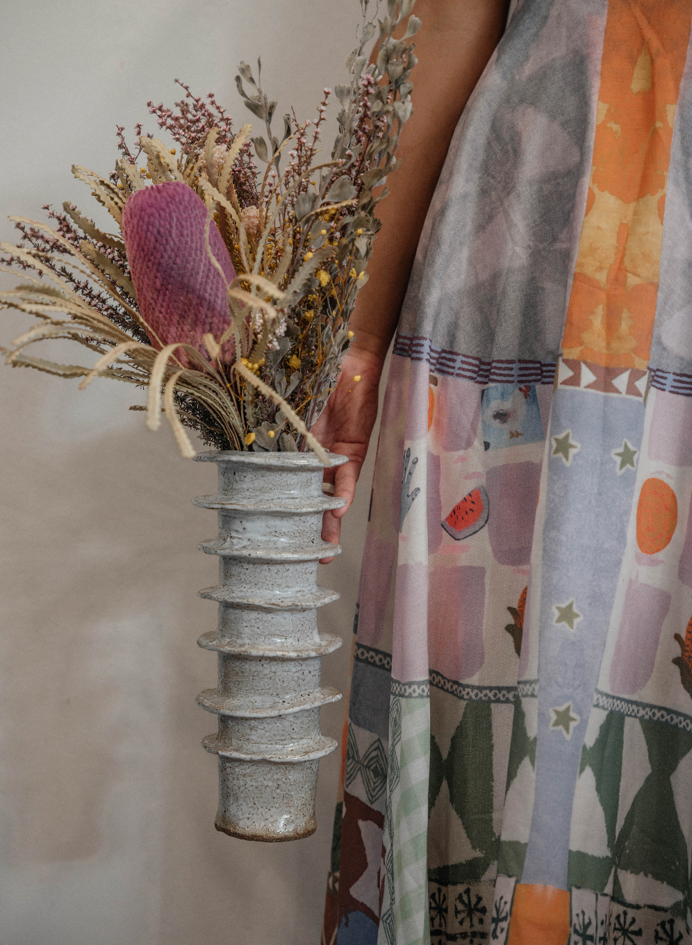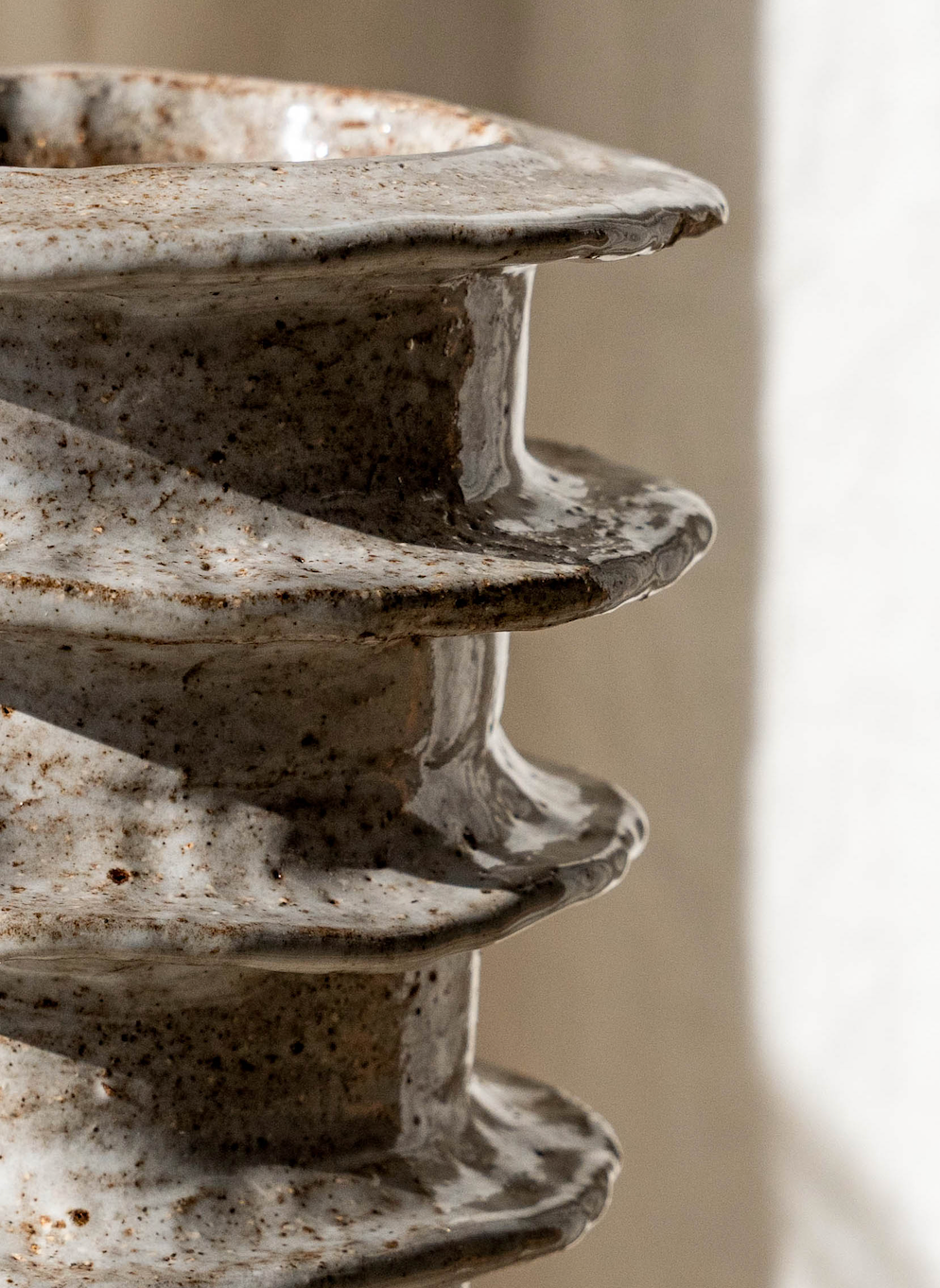 The Temple vase is a beautifully crafted piece that captures the essence of Japanese design and culture. Its unique texture, pattern, and muted colors make it a versatile piece that can be used in a variety of settings, from minimalist and modern to traditional and rustic.